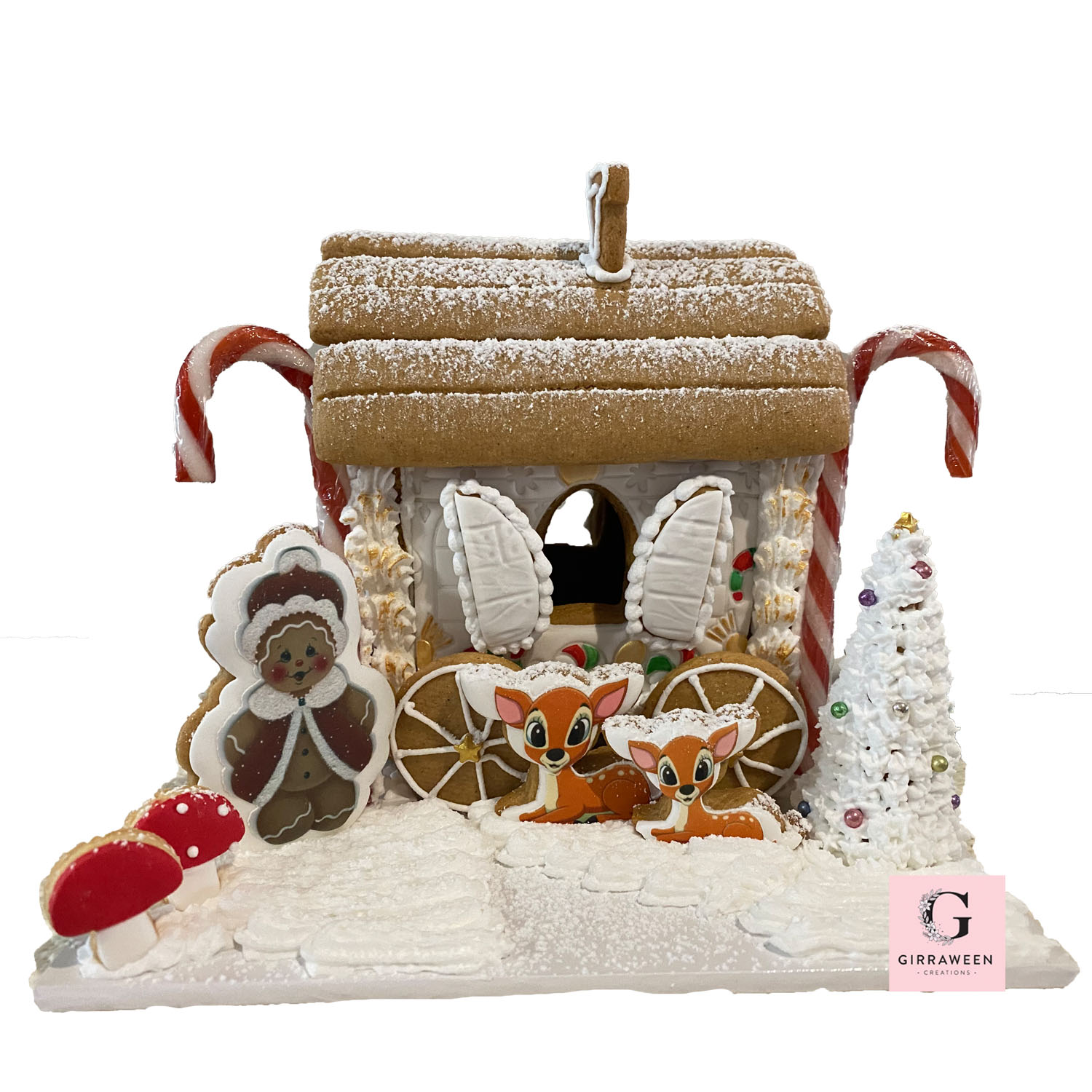 Everything on our Wagon and decorations are all edible. Hand Painted designs on the cart with 5 yummy gingerbread cookies and an edible royal icing tree which can be either white or green. 2 Large Candy Canes and Licorice allsorts for steps.