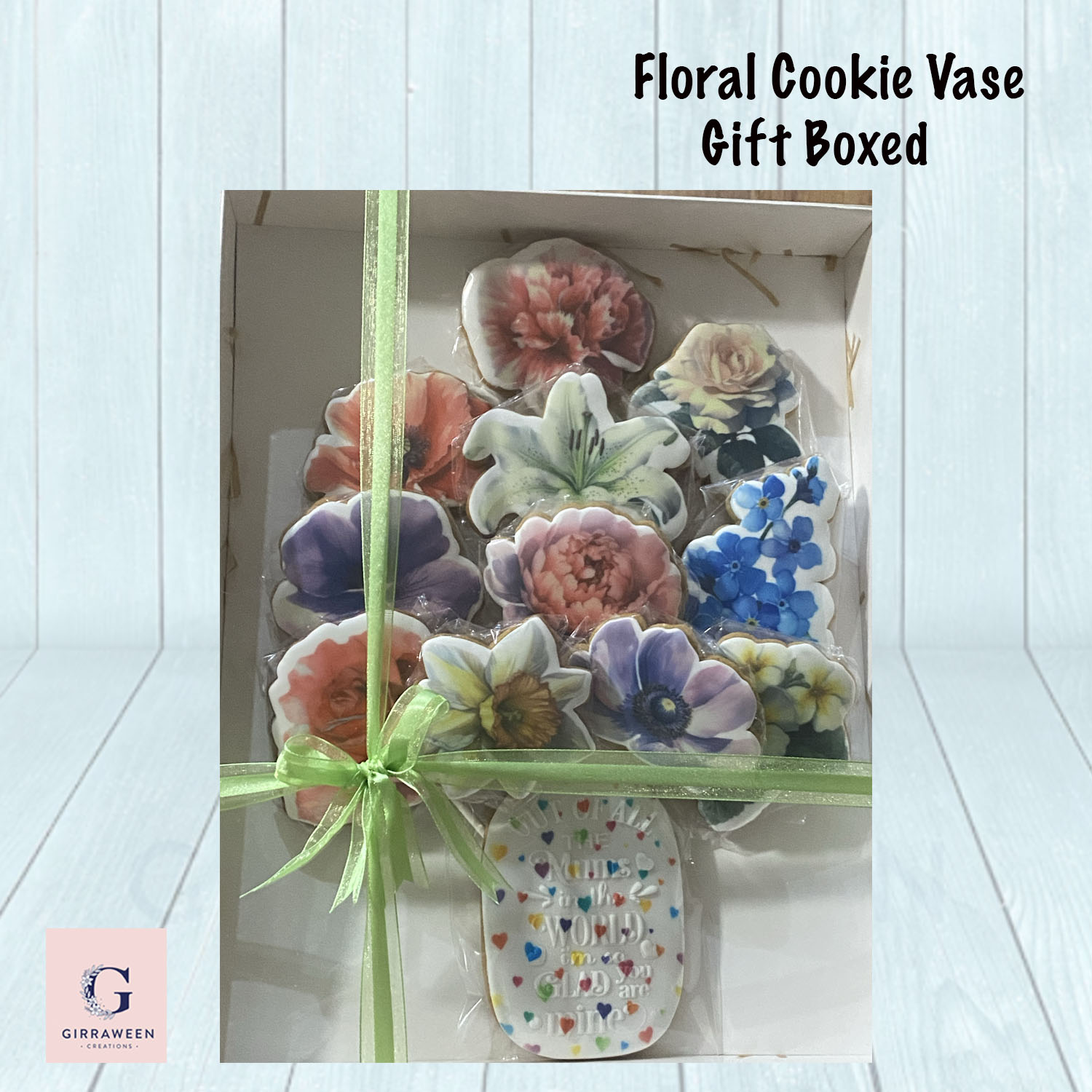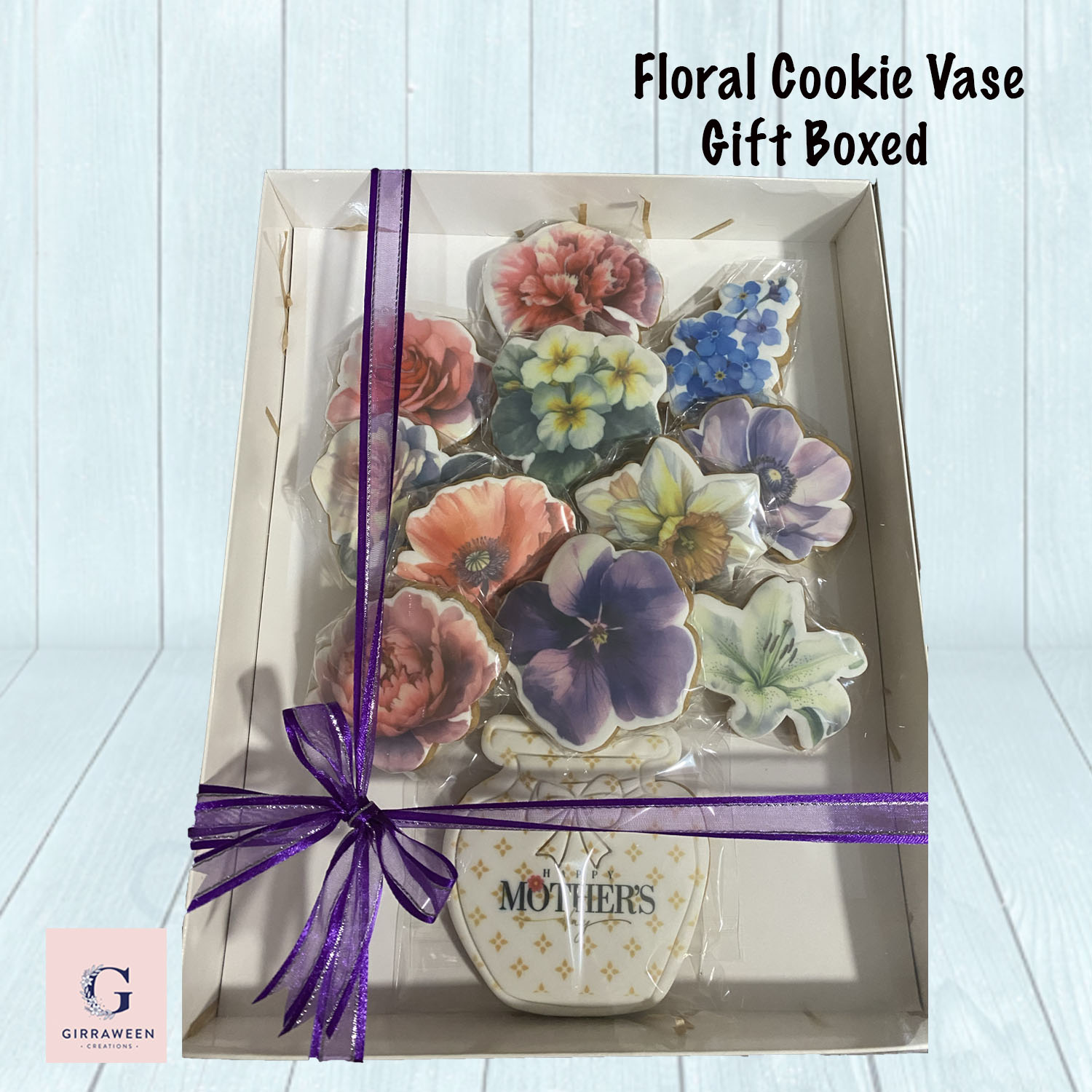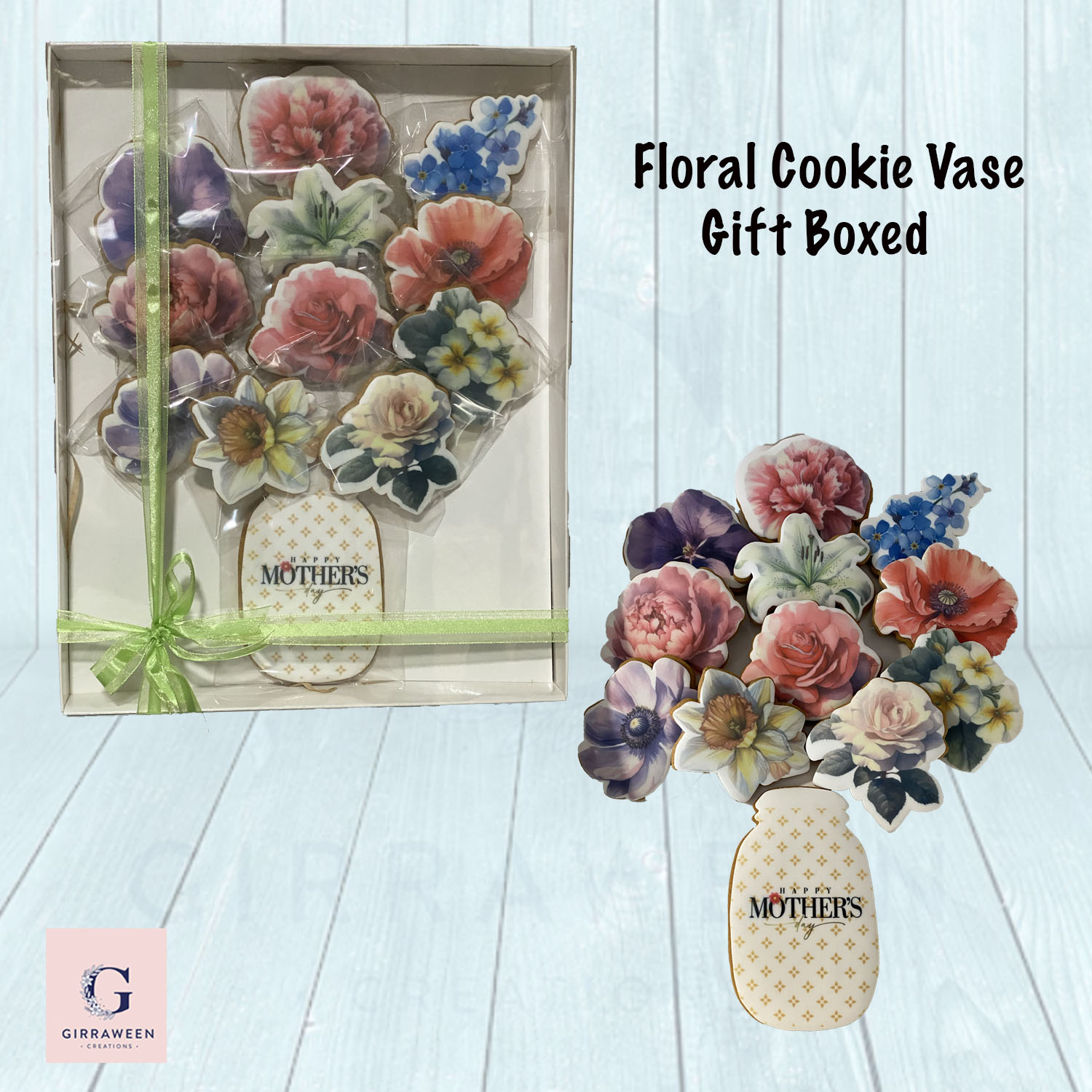 A Beautiful Floral Vase Cookie Arrangement, perfect Gift for Mum, Nan, Grandma for Mother's day.