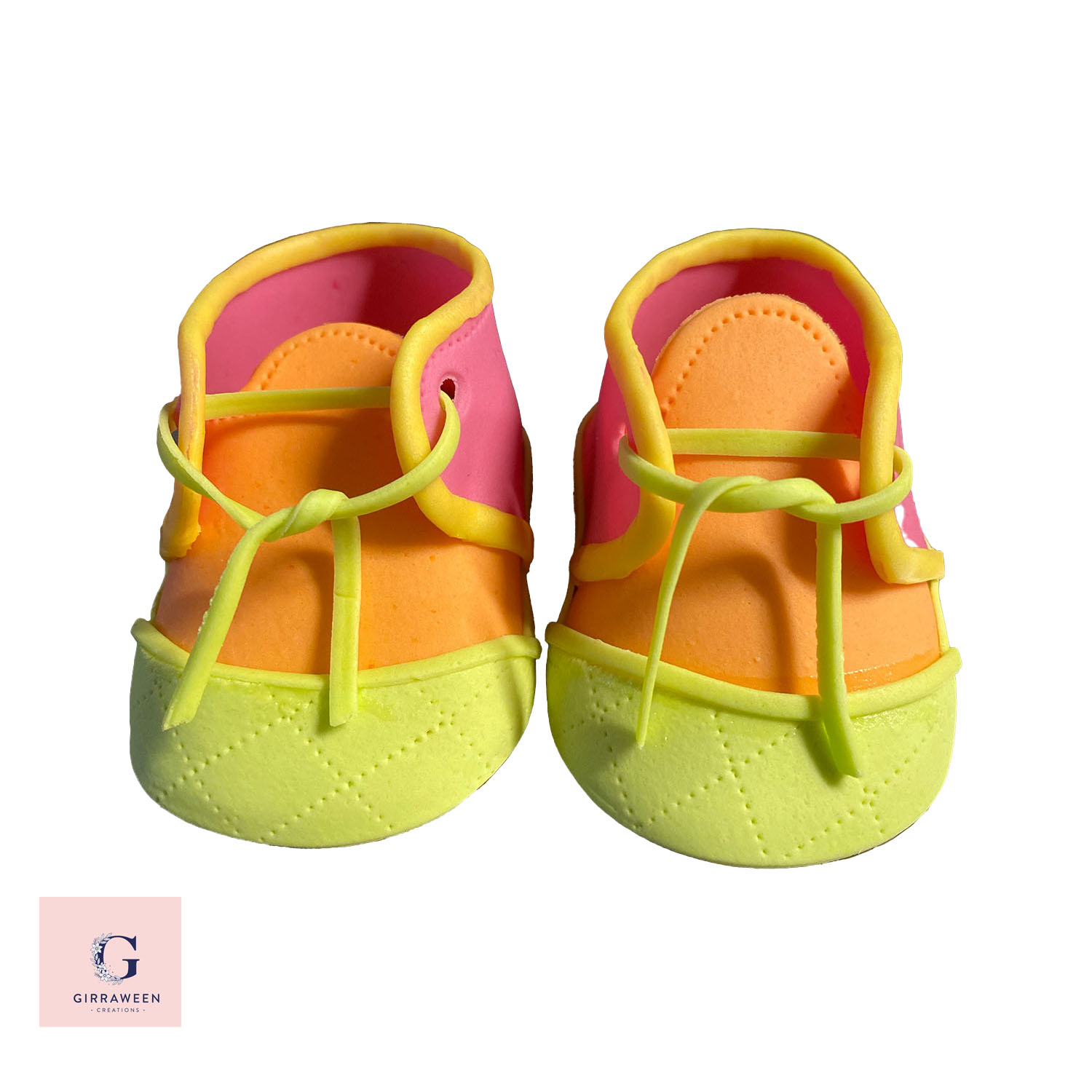 Our Cute Gelati Baby Shoes are made using our very own Superfine Flower Modeling Paste (Sugar, Tylose, Gums)